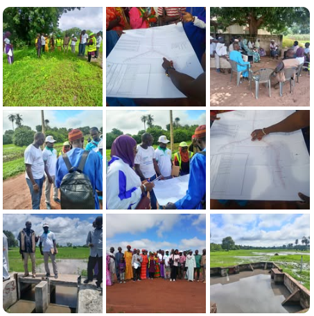 Missions de prospection et d’échanges avec les communautés sur les vallées de #Thiangol_Dianguina(115 ha), #Thiangol_Niampao (110 ha) (Commune de #Dialambere) et #Sare_Yero_yel (90 ha) (commune de #Sare_Coly). 38 villages et plus de 1000 producteurs (en majorité des femmes), organisés en coopératives et comités de vallée assurent l’exploitation.La finalité de la mission était de relever toutes les sensibilités environnementales et sociales en vu de l’#amenagement prévu sur ces trois vallées par le Projet de Développement économique de la Casamance #PDEC.Outre l’experte Genre et mobilisation sociale mandatée par le projet, l’équipe de la mission était composée de la #DREEC, #ARD, #CADL et #DRDR.Les échanges avec les membres des comités de vallée ont permis de révéler plusieurs contraintes parmi lesquelles: l’#ensablement des vallées, la non maîtrise de l’eau ( dispositif de retenu, de drainage, de nivèlement) la #dégradation de certains ouvrages de retenu (digues ou vannes), la #divagation du bétail, l’usage d’#herbicide, l’ouverture de #carrière de #sables le long des vallées.